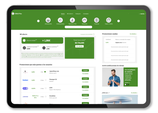 Cobas PLUS es una herramienta gratuita desarrollada por Cobas AM para facilitar el ahorro en planes de pensiones a través de la compra online con descuentos de productos variados, que cuentan con una serie de recompensas ‘cashback’.